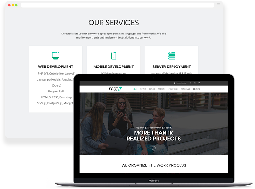 We implement ideas of our clients, focus on effective results. For this we use such technologies as: